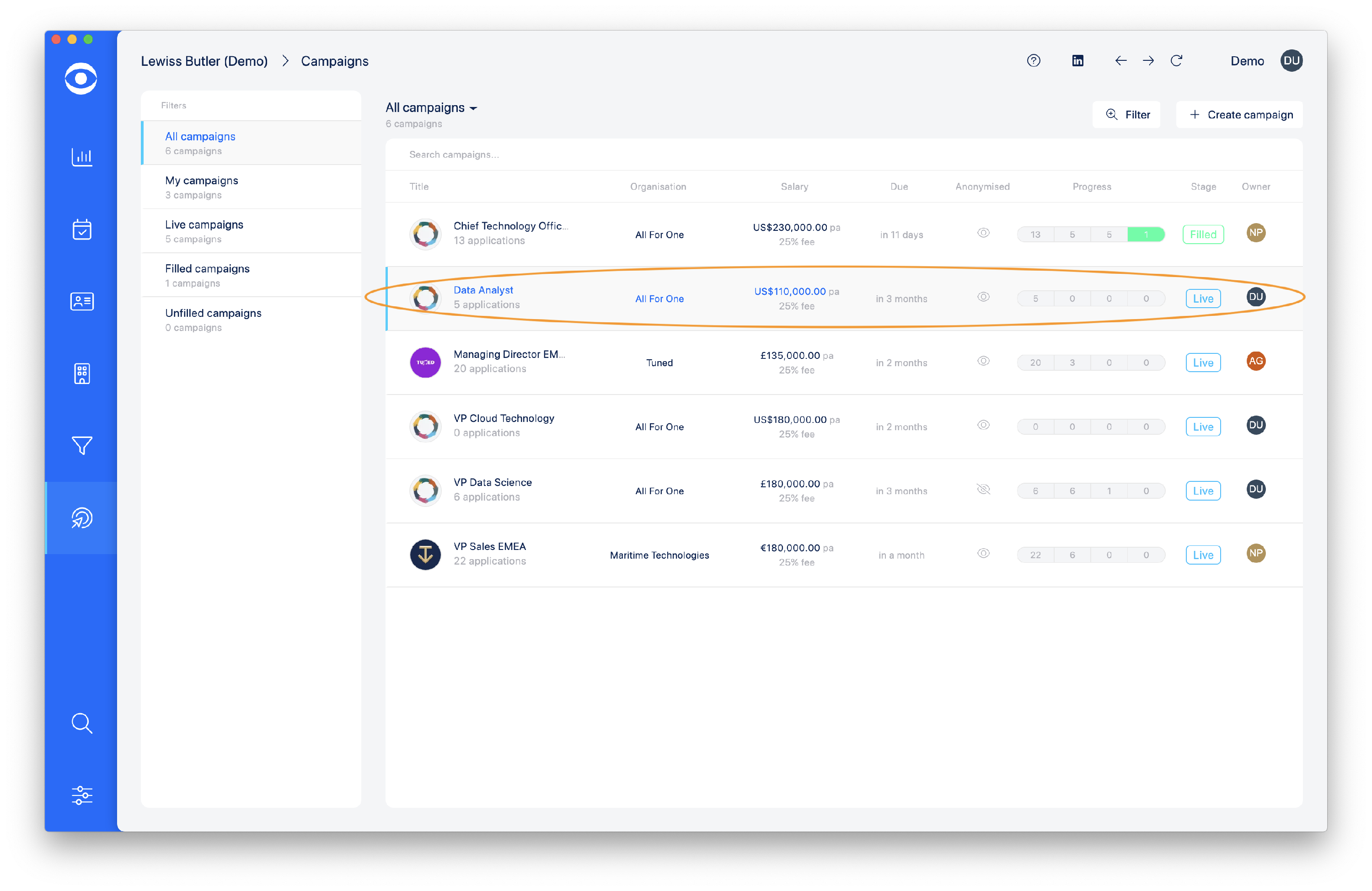 Select the Campaign in which you want to set up Job benefits.