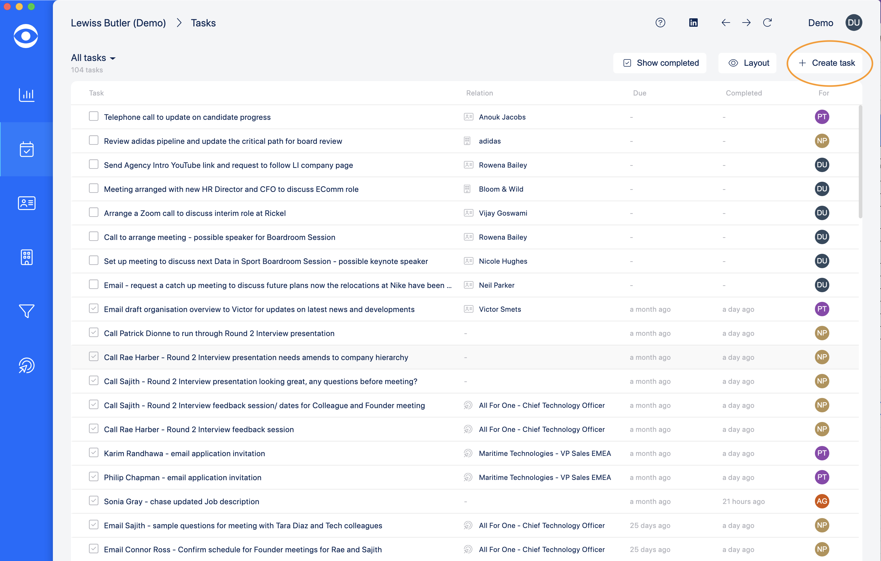 When a task is completed you can simply switch the status to “COMPLETED”. Choose whether to show completed tasks or hide.