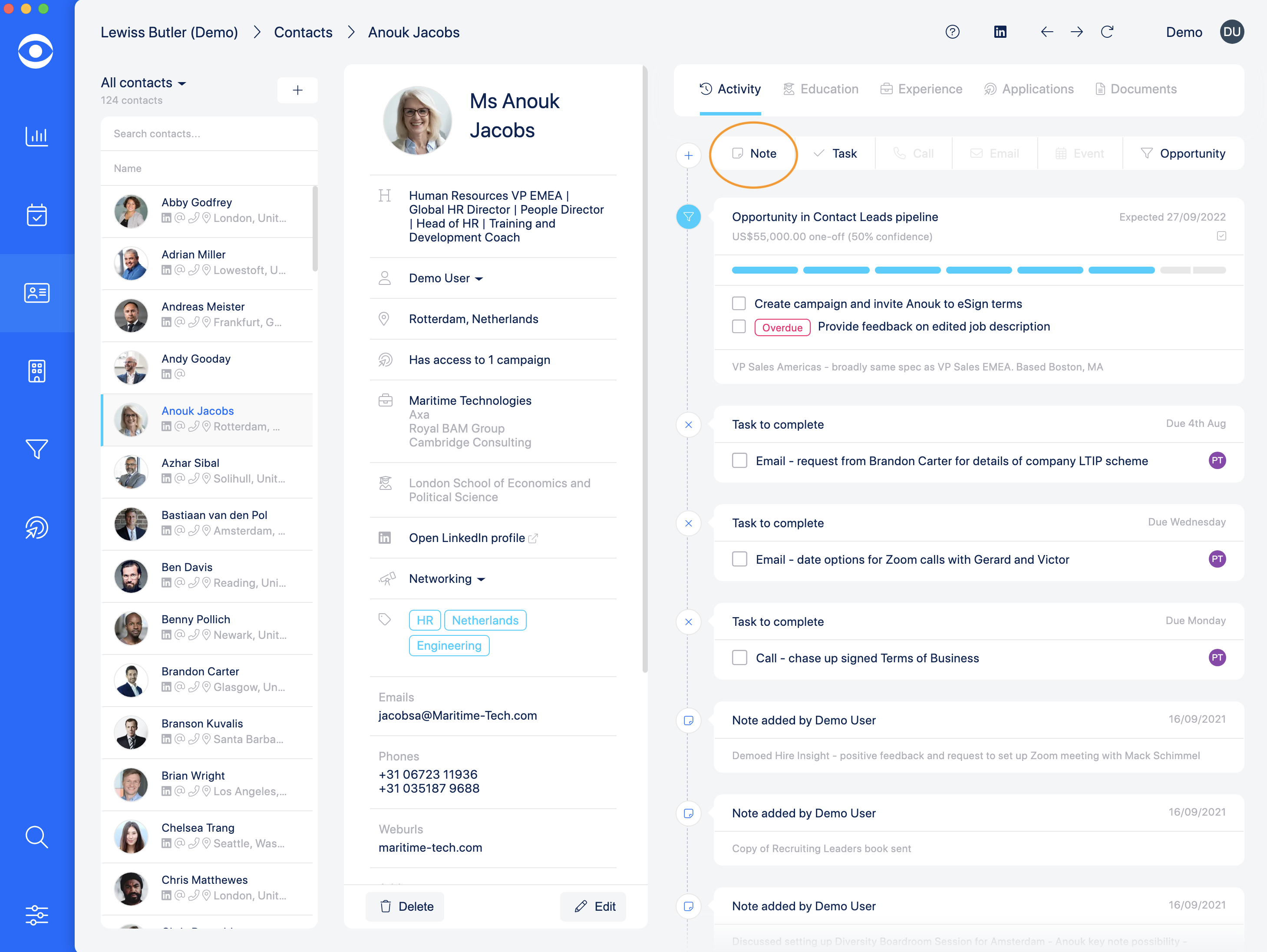 Bring your organisations alive with logos, thumbnails, tags, social links and campaign summaries. Add Notes, Tasks and Opportunities direct from the Organisation dashboard and file Terms of Business documents all together and easily accessible.