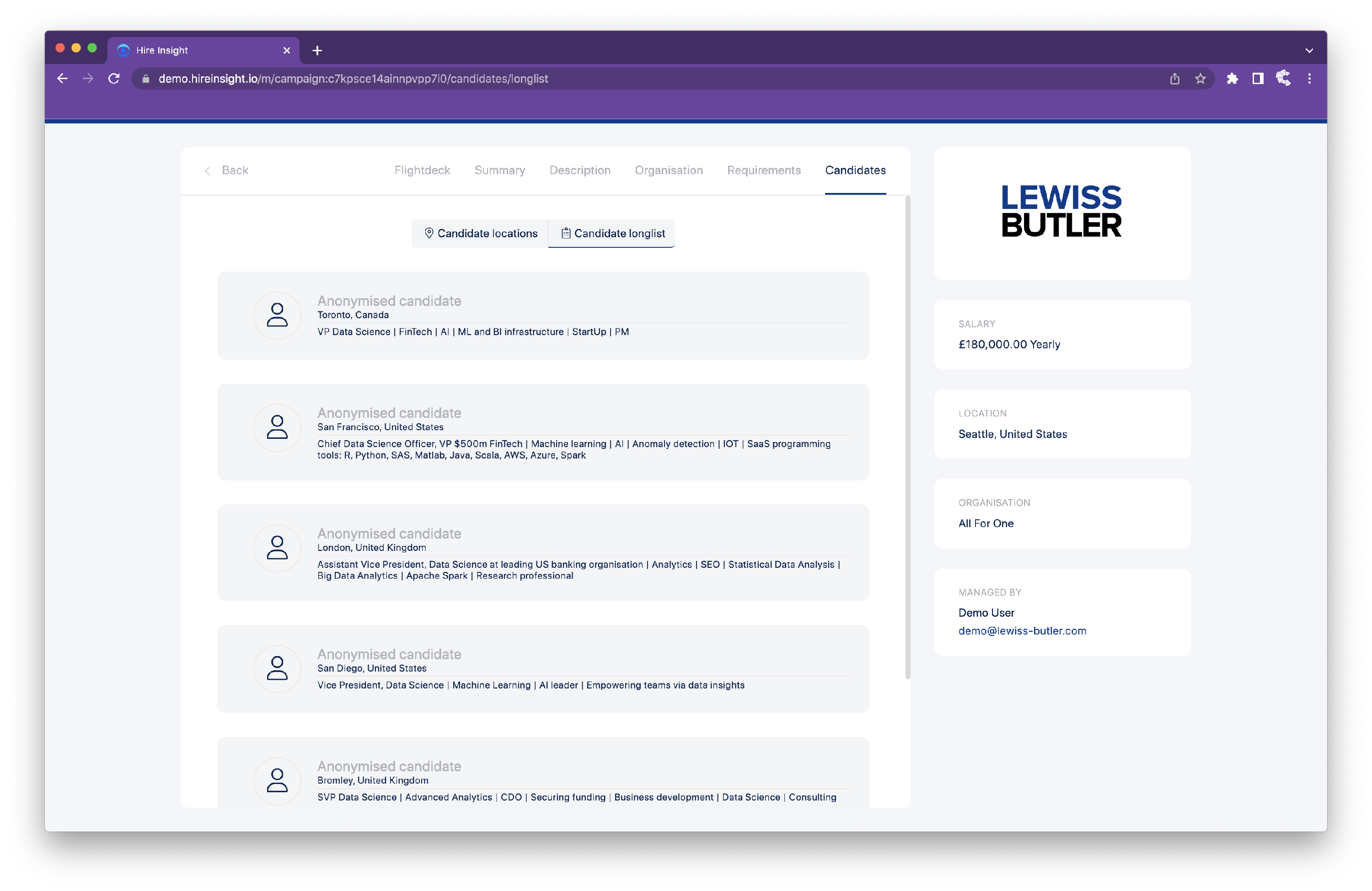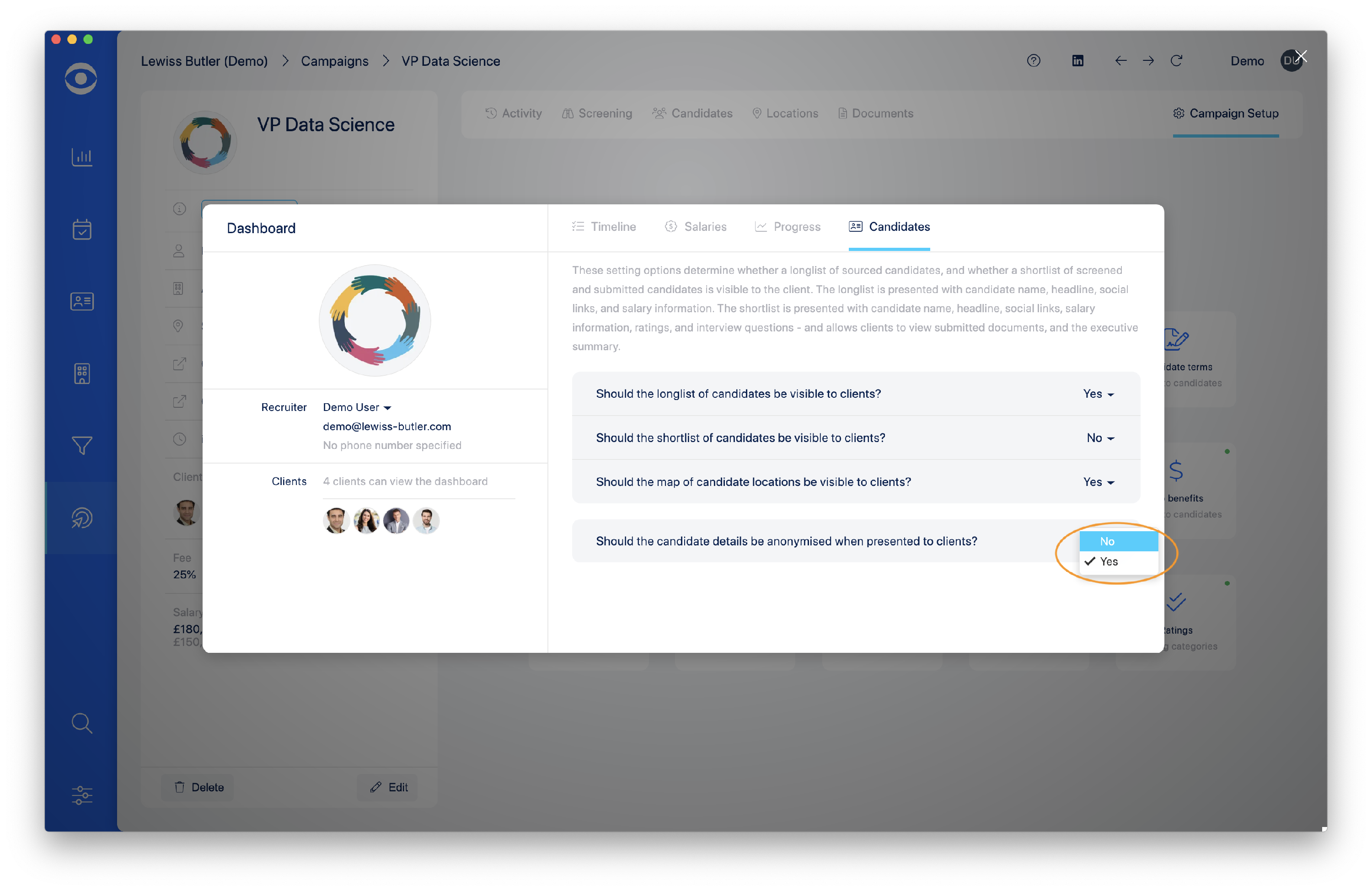 In the Client Portal the Candidate longlist will now only show anonymised details.